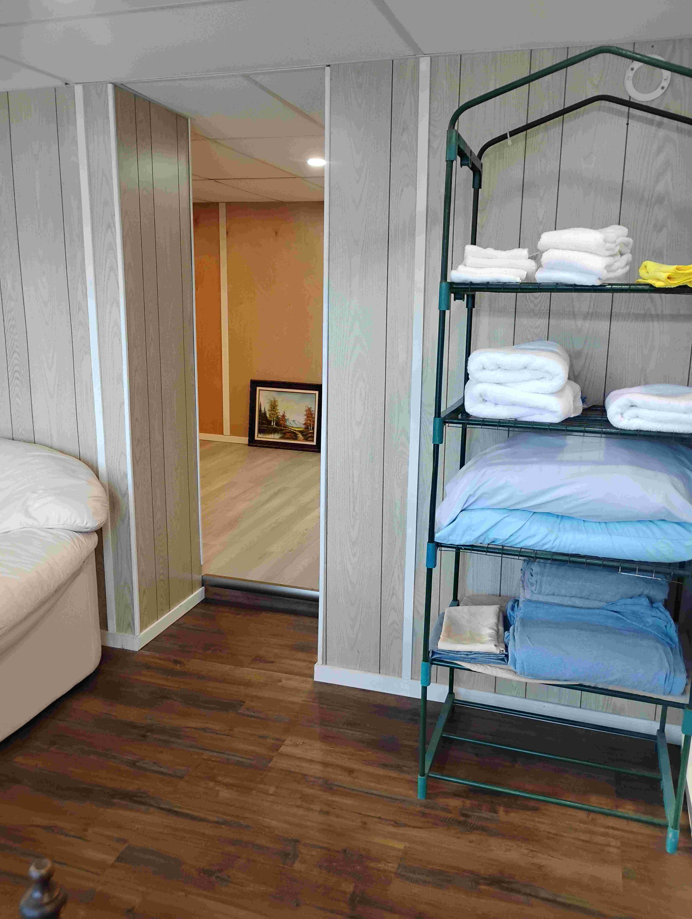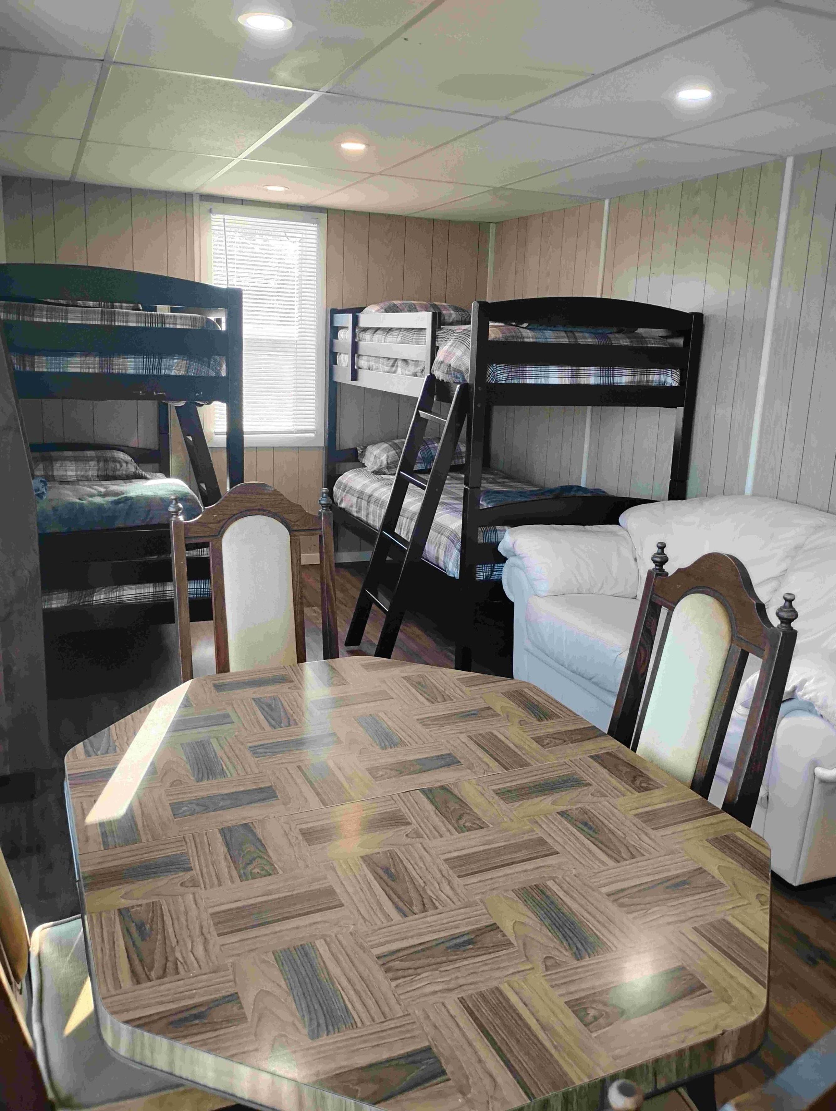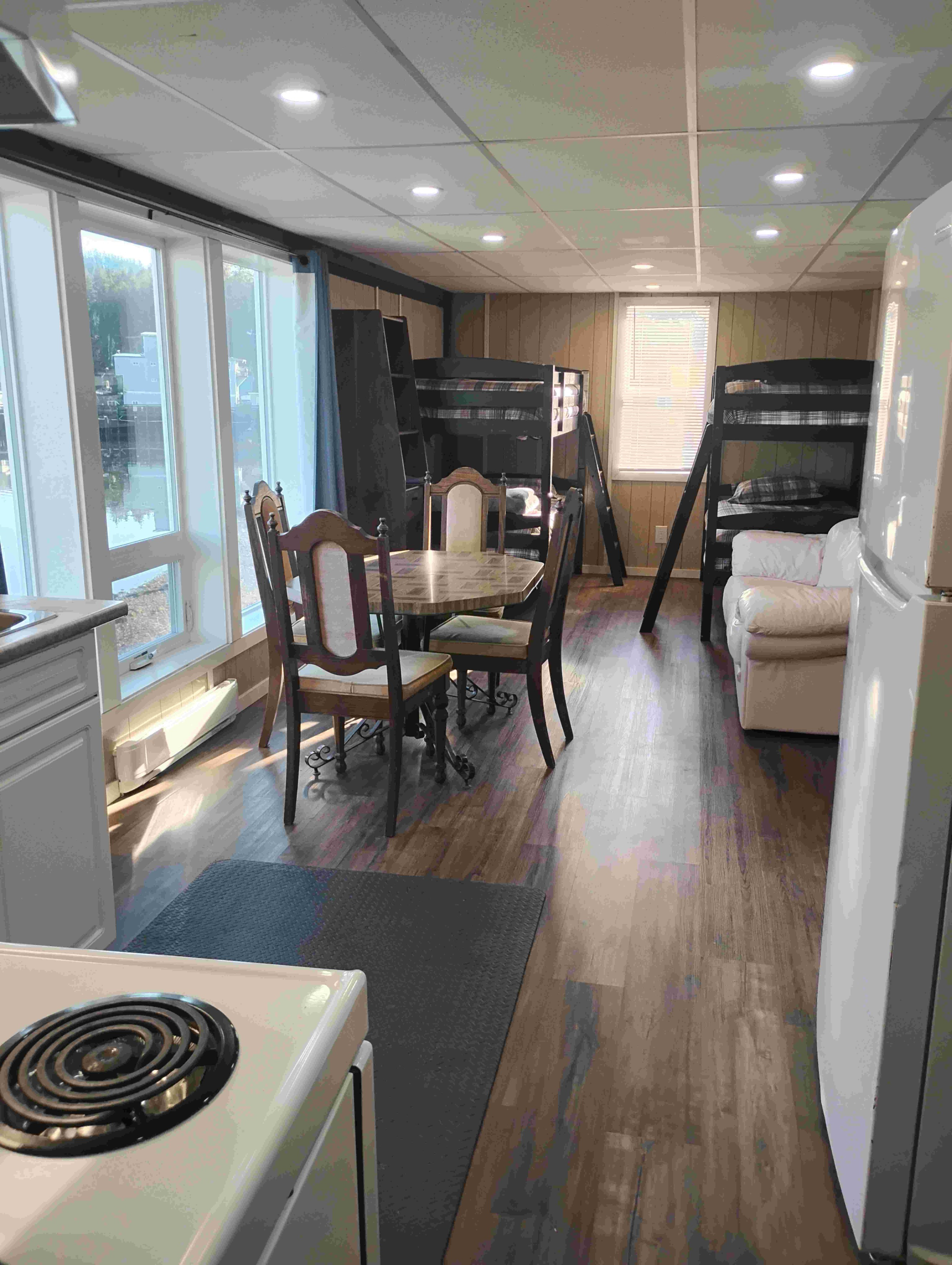 Comes with 2 sets of bunk beds and 2 single beds in our NEW 2ND BEDROOM, bedding, towels, kitchen, coffee maker, microwave, dishes, dining table, Fridge, stove, 3 piece (shower) bathroom and a small couch in the living area.
